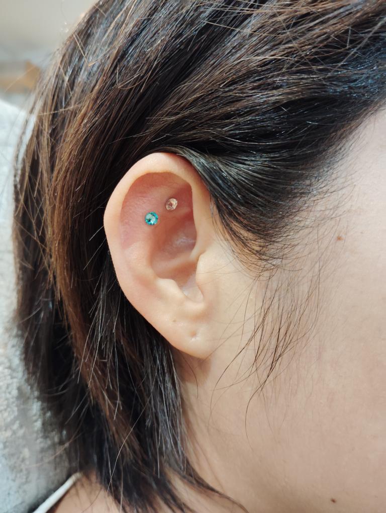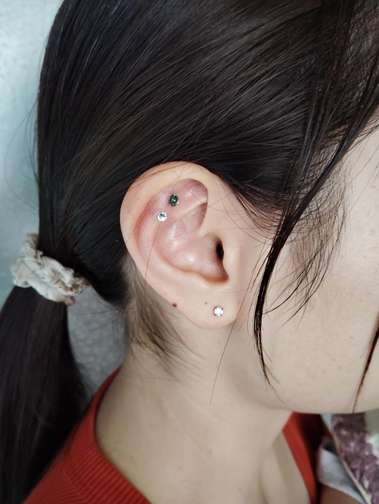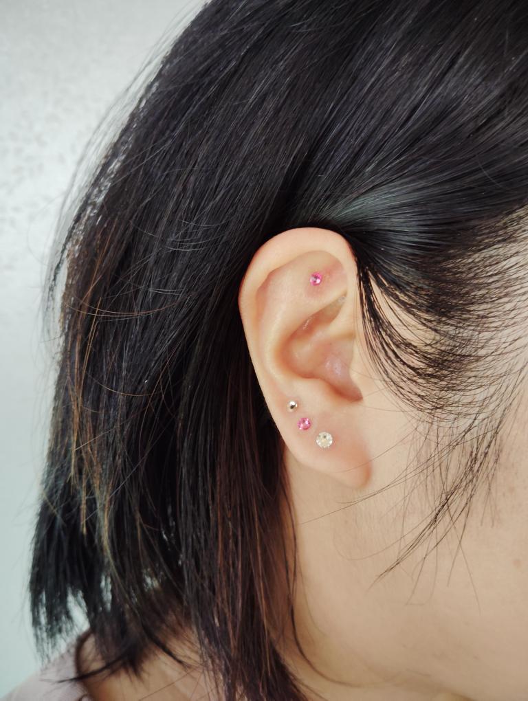 そのあと耳つぼジュエリーを貼っていきます。