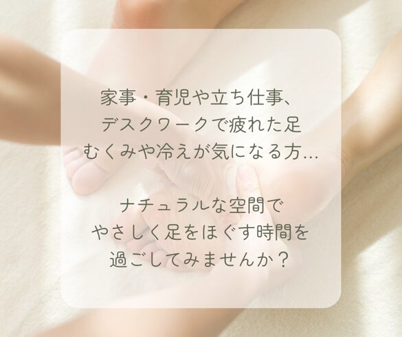 | 備考 | ◉食後1時間は施術を避けたいので、1時間前の食事はお控え下さい🙏 ◉足裏だけでなく、膝まで施術します。膝まで捲り上げられるような服装で来て頂けると助かります。 ◉お一人様あたり約20分の施術となります。 |
