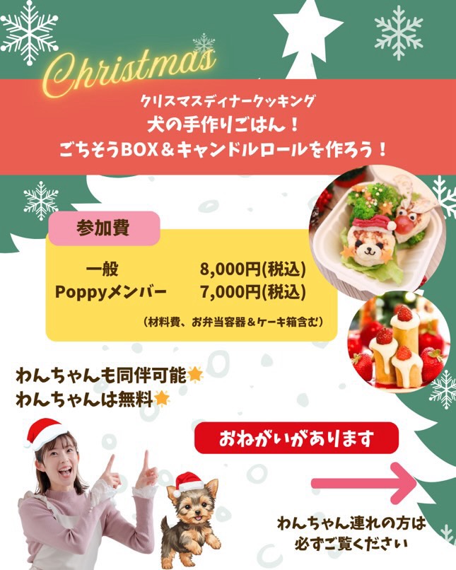 | 参加費 | 一般 8,000円 poppyメンバー7,000円 (材料費・お弁当容器・ケーキ箱含む &参加特典プレゼント) |