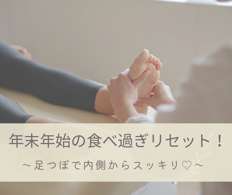 足は“第二の心臓”と言われるくらい、 とても大切な場所です。 この時期は、忘年会やお正月のごちそうで 食べすぎ・飲みすぎになりがち… そんな疲れた体も、足つぼマッサージで スッキリリセット✨ 足裏には体につながるたくさん […]