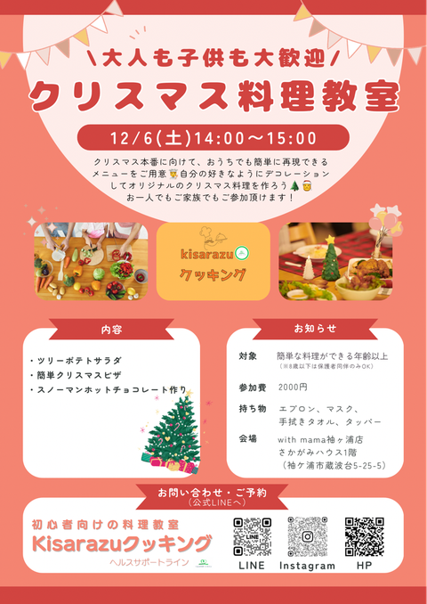 クリスマス本番に向けておうちでも簡単に 再現できるメニューをご用意🧑🍳 自分の好きなようにデコレーションして オリジナルのクリスマス料理を作ろう🌲🎅 お一人でもご家族でもご参加頂けます‼️ 出来上がったら撮影エリアで写 […]