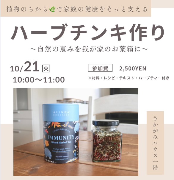 ハーブチンキを知っていますか? 自然の恵みをぎゅっと濃縮した、 からだ想いの“ハーブのしずく”。 今回は、免疫をやさしくサポートしてくれる ハーブを使って、チンキ作りの会をひらきます🌼 子育てや家事に追われる中でも、自然 […]